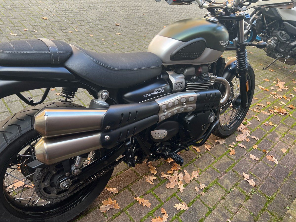 Triumph Street Scrambler -- erst 18000 Kilometer gelaufen -- Gepäckträger -- Scheinwerfergitter -- Heckumbau Nummernschildträger -- LED -- Motorschutzbügel Unser Standort: 27308 Kirchlinteln , Bahnhofstraße 6 Telefon: 04236 / 7663130 Whats App: 0152 / 34579819 Michael Dietrich Luca Bischoff Inzahlungnahme - einfach alles anbieten Günstige Finanzierungen Versand auf Anfrage Wichtige Hinweise: Dekorationsartikel gehören nicht zum Leistungsumfang. Der angegebene Preis gilt bei Selbstabholung. Diese Ware unterliegt der Differenzbesteuerung. Daher wird die im Kaufpreis enthaltene Umsatzsteuer in der Rechnung nicht gesondert ausgewiesen. Unsere Öffnungszeiten: Mo. - Fr.: 9:00 - 18:00 Uhr Sa.: 9:00 - 13:00 Uhr Schaut auch: www.scholly.de www.facebook.de/schollys Instagram: schollys_motorrad_gmbh Youtube: schollystv